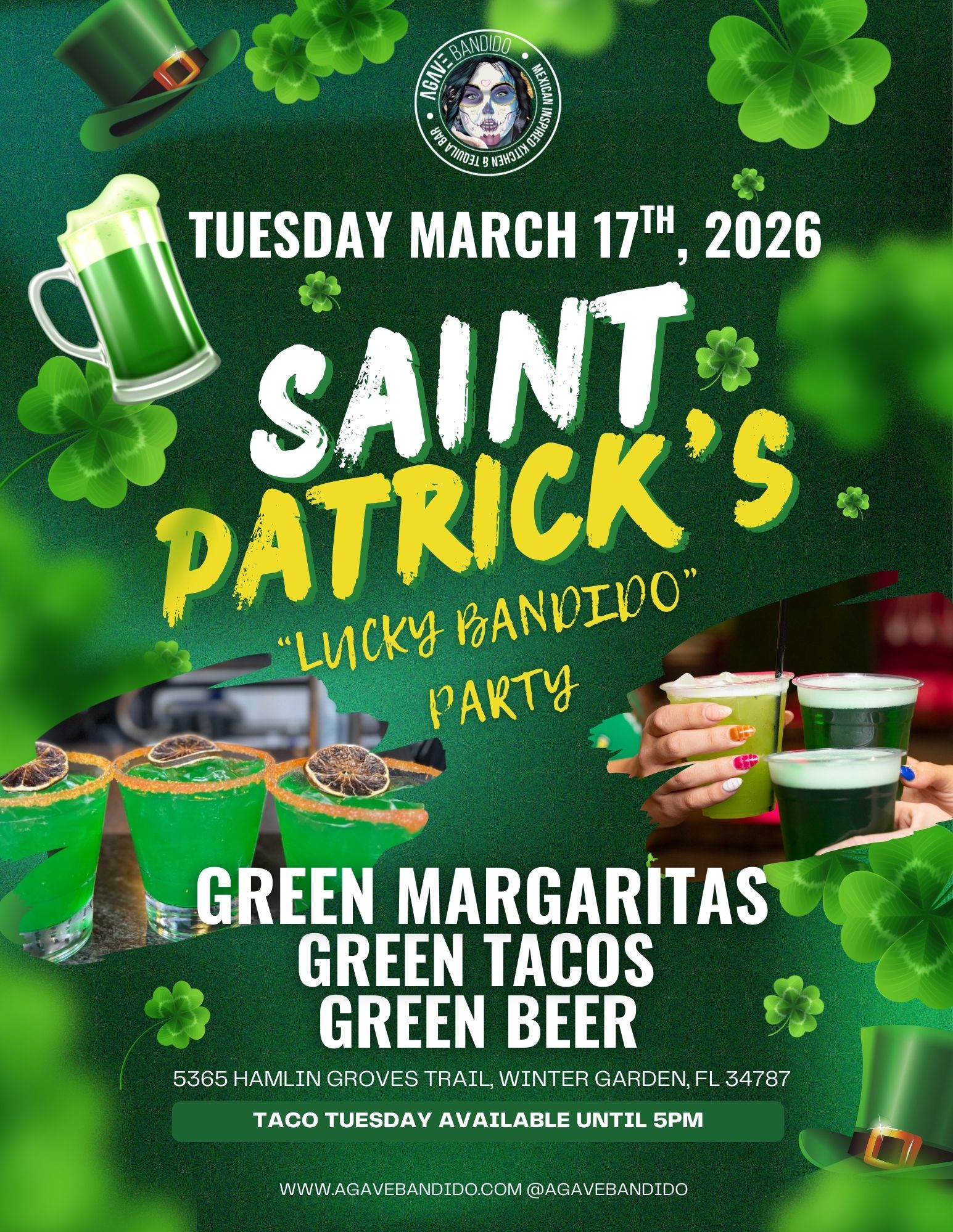 Get lucky with Agave Bandido Tuesday, March 7th for their “Lucky Bandido” Party!