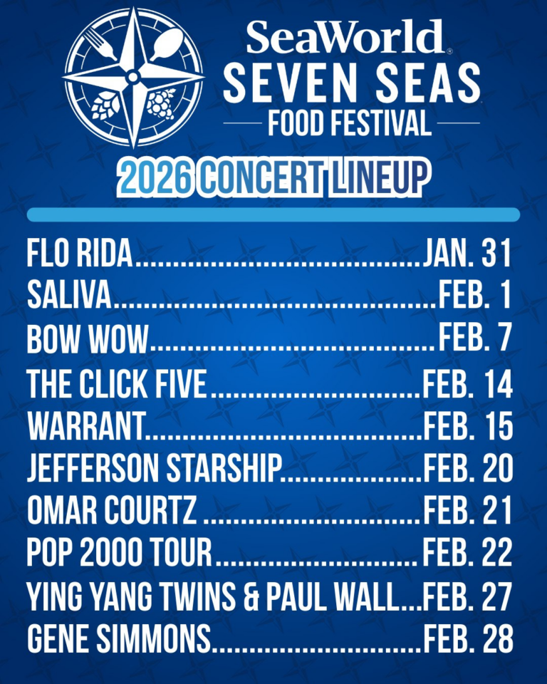 SeaWorld Orlando is officially turning the Seven Seas Food Festival into a full-blown concert destination in 2026. Running January 31 through May 17, the festival features 30+ full-length live concerts, all included with park admission—and FREE for Annual Pass Members.
