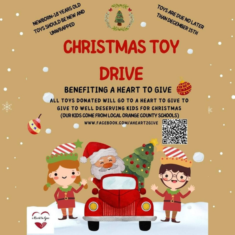 Support A Heart To Give, an organization dedicated to helping children in local Orange County schools, by donating toys for children of all ages—from newborns to teenagers. Your donation can help provide a much-needed gift to those who may not have the means to celebrate in a traditional way. Drop off your donations by December 15th at Abbotts Hamlin, located at 16406 New Independence Parkway, Suite 120, Winter Garden, FL 34787.