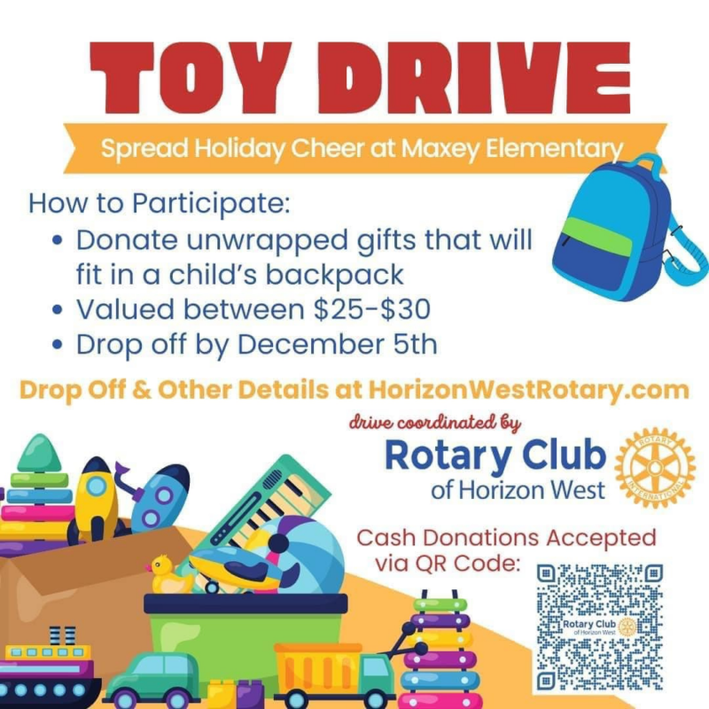 Rotary Club of Horizon West – Toy Drive for Maxey Elementary
