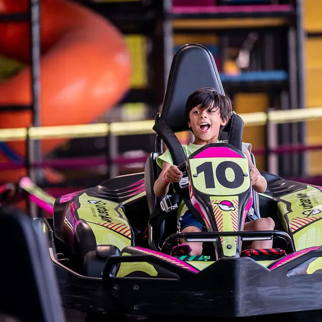 3…2…1…Go-Kart! Fulfill your need for speed and put your driving skills to the test on the indoor, two-story go-kart track. Available in single or double rider karts, these vehicles are all electric, so there are no fumes or loud engines to slow your fun. And they self-charge while in the queue, eliminating the need to pull karts off the track and keeping the lines moving at top speed.